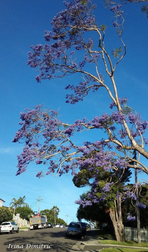 ~ But some Jacarandas produce flowers and foliage at the same time. This one is in my street.