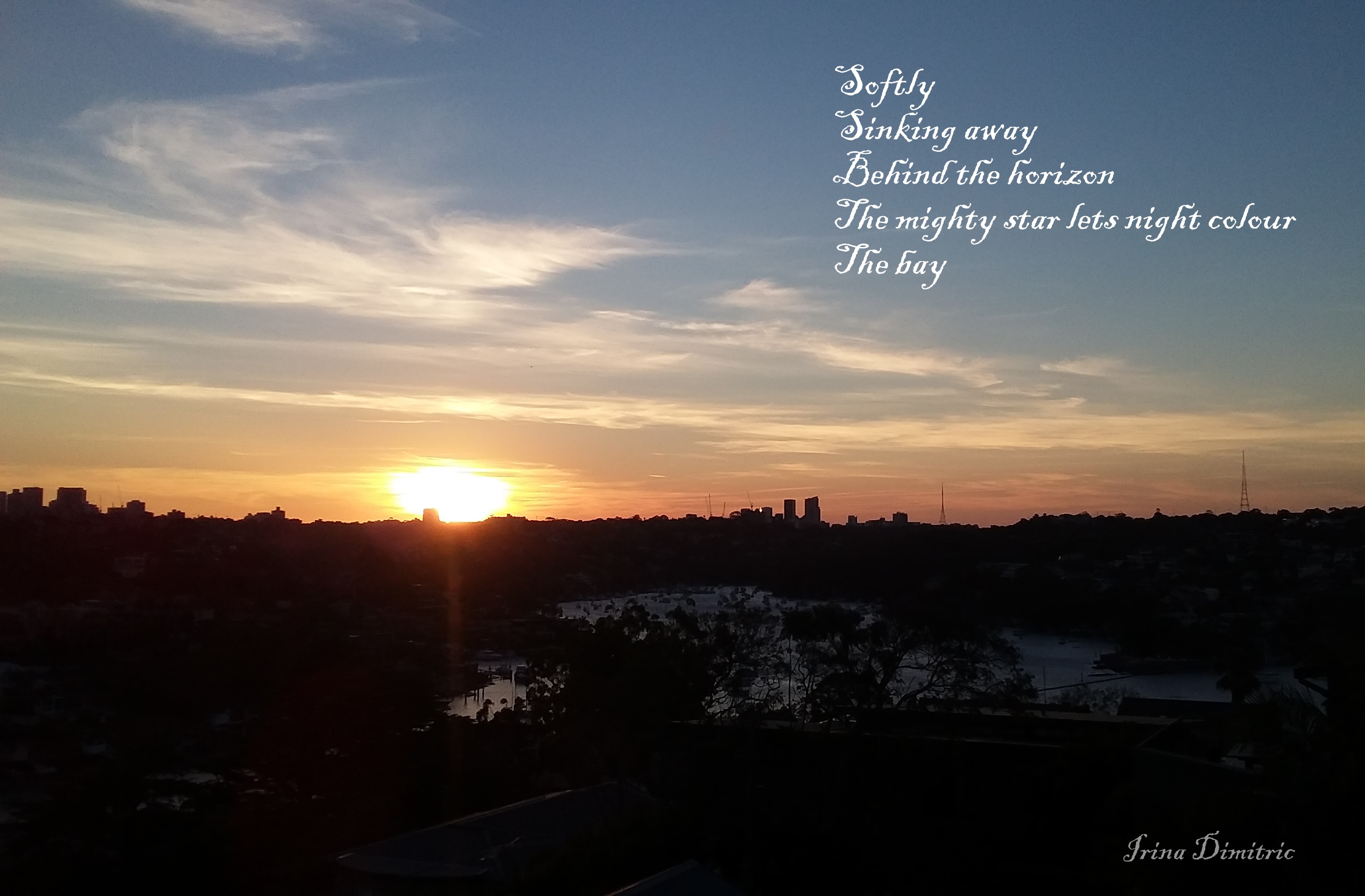 Your delightful cinquain describes your wonderful photograph so well, Irina. The ‘mighty star’ never fails to delight with his arrival and departure each day.
