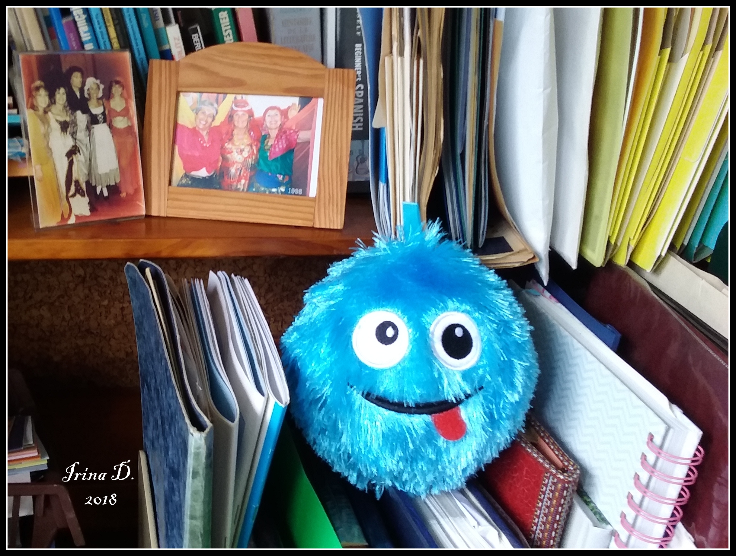 Time for a bit of nonsense! A tribute in verse to Winky Blue, who is going to keep me fit. I finally found the right ball in a two-dollar shop. It cost a bit more – $5, but it was worth it. I instantly fell in love with that cute face. And I love the colour, too. I named him Winky because he does kind of wink at me, calling me to start exercising.