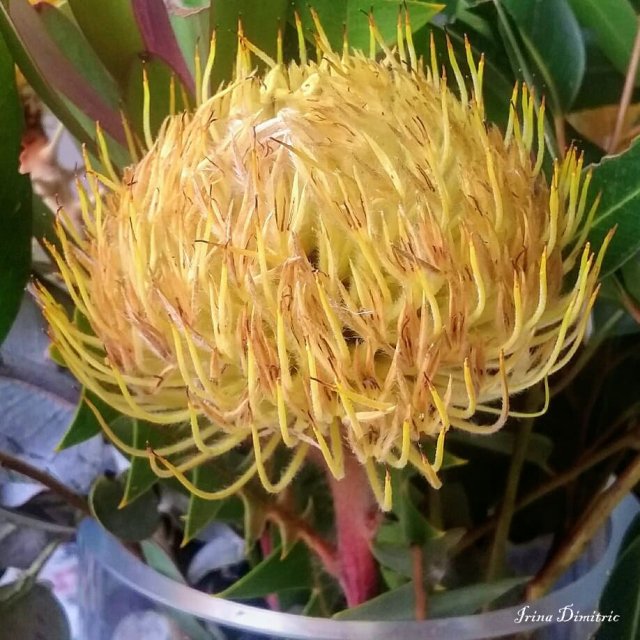 This is Bird’s Nest banksia or Banksia baxteri, an Australian Native flower.