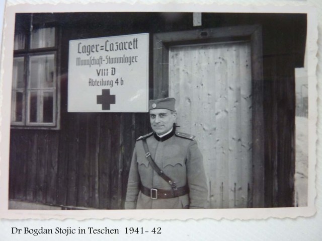 Wold War II saw him in POW camps where his mates were Australian, British, New Zealand, Russian and French doctors. On 2 April 1941, Lt-Colonel Dr B. Stojić was mobilised into the Yugoslav Army and appointed commander of the 44th Division Field Hospital, captured by the Germans at Doboj in Bosnia on 15 April and sent in cattle trucks to a POW camp at Lamsdorf for 4 months, where he got his doggie tag Stalag VIIIB/19522 and lost 10 kg on a very meagre prisoners’ diet.