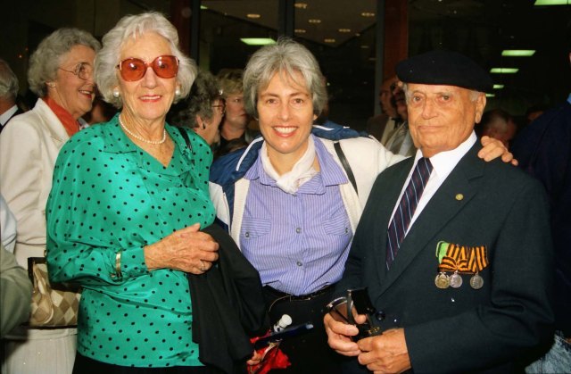 To honour the heroes who fought for our freedoms Mum and I with Dad on Anzac Day, 25 April 1988, in Sydney, after Dad completed the March. He was 95 years old.