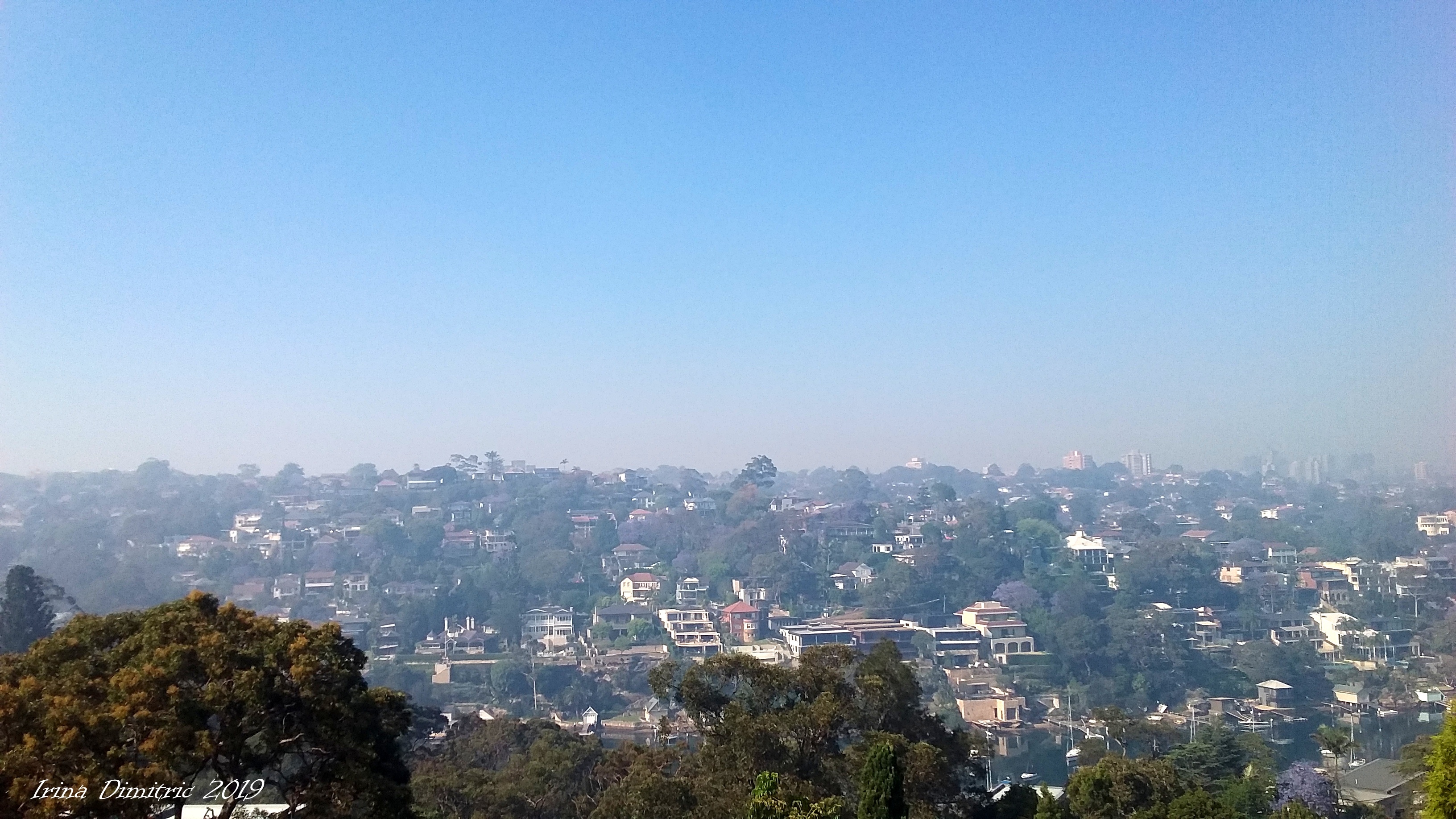 My heart goes out to the victims of devastating bushfires in Australia. The smog in Sydney today reached New Delhi levels. I had to keep the windows shut in the morning. Then I took a taxi, air-conditioned, luckily, to visit my hubby in hospital, air-conditioned too. On the way back, after lunch, the smog had dispersed. The two photos were taken from my balcony this morning.