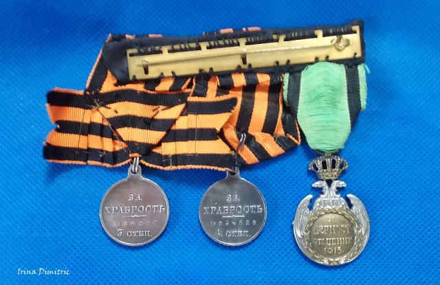 The back of the medals: 2 Russian St. George medals for bravery and “Albanska Spomenica” – the Albanian Commemorative Medal for the withdrawal of the Serbian Army through Albania